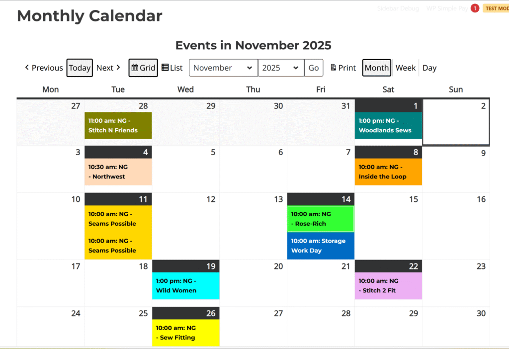 I fully expected to sew today but I got an email asking about the calendar logic for the ASGHouston.org website. I did not realize that I have not created any documentation about how to use the calendar event. Well, instead of sewing, I have spent my day documenting all aspects of the Calendar plugin.